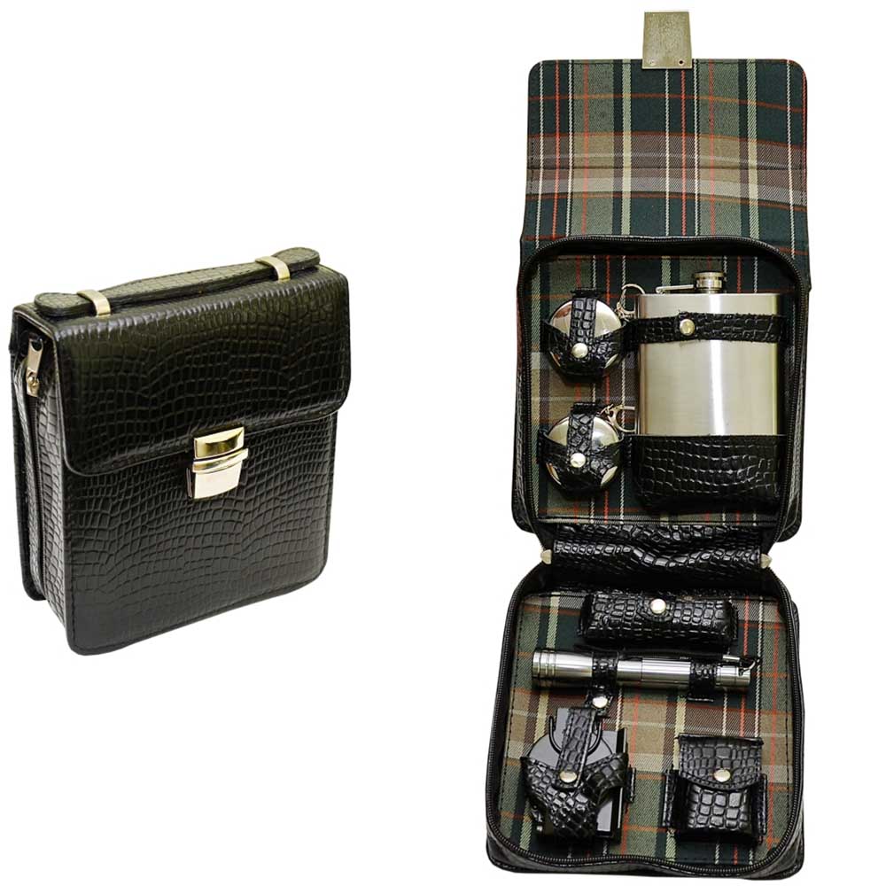 Кожаный несессер в зависимости от содержания - не только хороший подарок для мужчин, но и полезная, часто используемая вещь. Конечно, приятно иметь несессер как игрушку, которую приятно достать из бардачка со словами "смотри, какую штуку мне на юбилей подарили!" - тут тебе и фляжка со стаканами на 2 персоны, угостить товарища, и многофункциональный нож для закуски или открытия напитков, зажигалка для вредных привычек. Поскольку несессер - это сумка для путешествий, в нем можно обнаружить и компас, на случай, когда в навигаторе сядет батарейка - так вы будете твердо знать, где находится север. А чтобы в сумерках было проще собрать все это добро на место, добавлен небольшой фонарик.